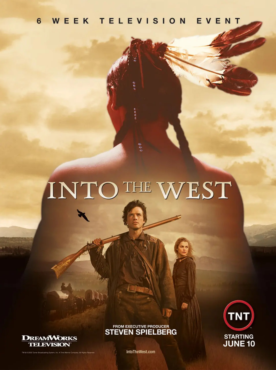 大家一定还记得2002年斯导给大家带来的《兄弟连》(Band of brothers),国内的美剧迷也因此而迅速扩充。时隔三年,斯导带领麾下的梦工场与TNT电视网合作,再度推出西部史诗巨作《Into the west》(《西部风云》)不同于以往传统的西部片只从白人殖民者的视角来刻画西部的开拓史,从《辛德勒名单》开始一直追求客观公正再现历史的斯导在这部《Into the west》中,从白人移民和北美本土印第安人两个不同家庭的视角来书写这段宏伟的史诗。两种截然不同的文化冲突和交流、融合,移民者建设新家园的艰辛,淘金者的暴富欲望都是此剧要表现的主题。一个是从弗吉尼亚州驾着牛车迁徙而来的车匠一家,一个是来自lakota部落的印第安人家庭,他们将一起见证美国西部史上风情诗画与血雨腥风。当然,爱情、亲情、友情绝对是任何佳作中永远也不会缺少的主题和《兄弟连》一样,《Into the west》也是一部短剧(Mini Series),只有6集,共12小时