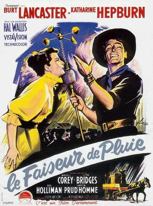 骗子来到炎热的西部城镇,他对农民说,如果给他钱,他就能变出雨,在卡里的家里,他用各种各样怪异的声音加上一些无法形容的仪器开始作法,真的开始下雨了——这完全是一种巧合。那户人家的长女爱上了乐观的骗子,骗子开始迎合她并改变她孤寂的生活。两人差别很大的性格特点贯穿了电影的始终。